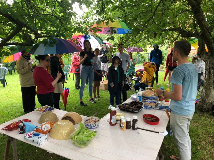 Our annual BBQ this year was in two ‘sittings’, so we could keep within the maximum of 30 people meeting outdoors each time.