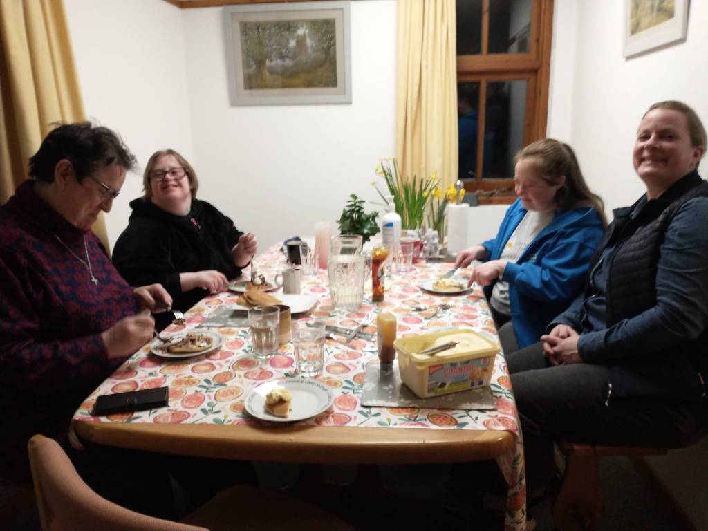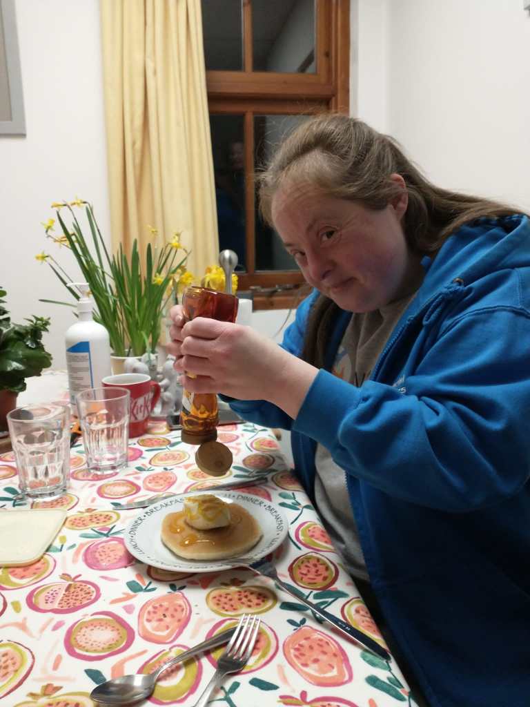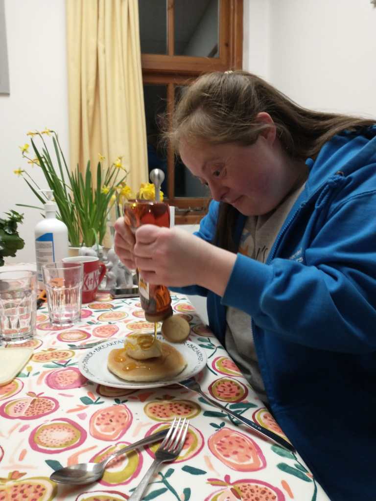 Pancake Party Posted byirwincarole1st Mar 2022Posted inUncategorized On this Shrove Tuesday, which is also World Down Syndrome Day, our regular meal in Lyn’s House ended with pancakes! Related