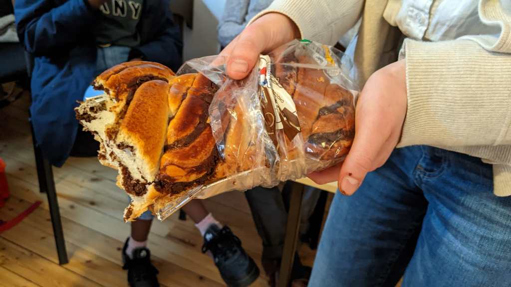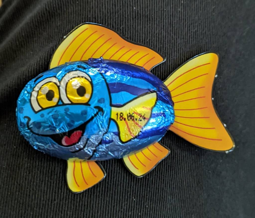 (We used tear-n-share brioche and foil-wrapped chocolate fish!)